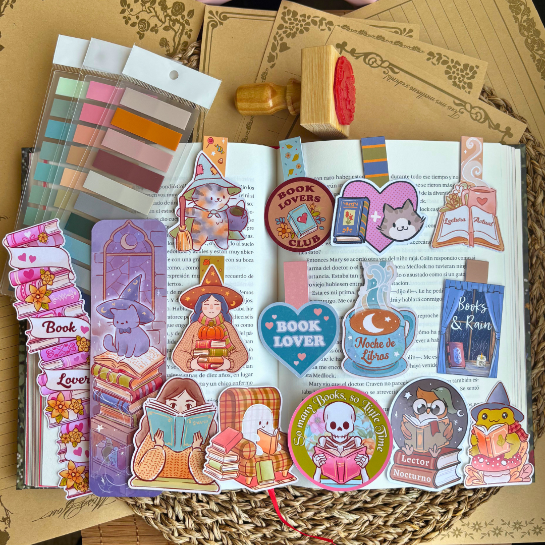 Arma tu pedido con tus productos favoritos, podrás encontrar en nuestra tienda desde ex libris personalizados con tu nombre, sellos para calificar tu lectura, stickers, separadores, tazas, book journal, libretas y blocs de notas, hechos con mucho cariño de fan girls para fan girls 🩷