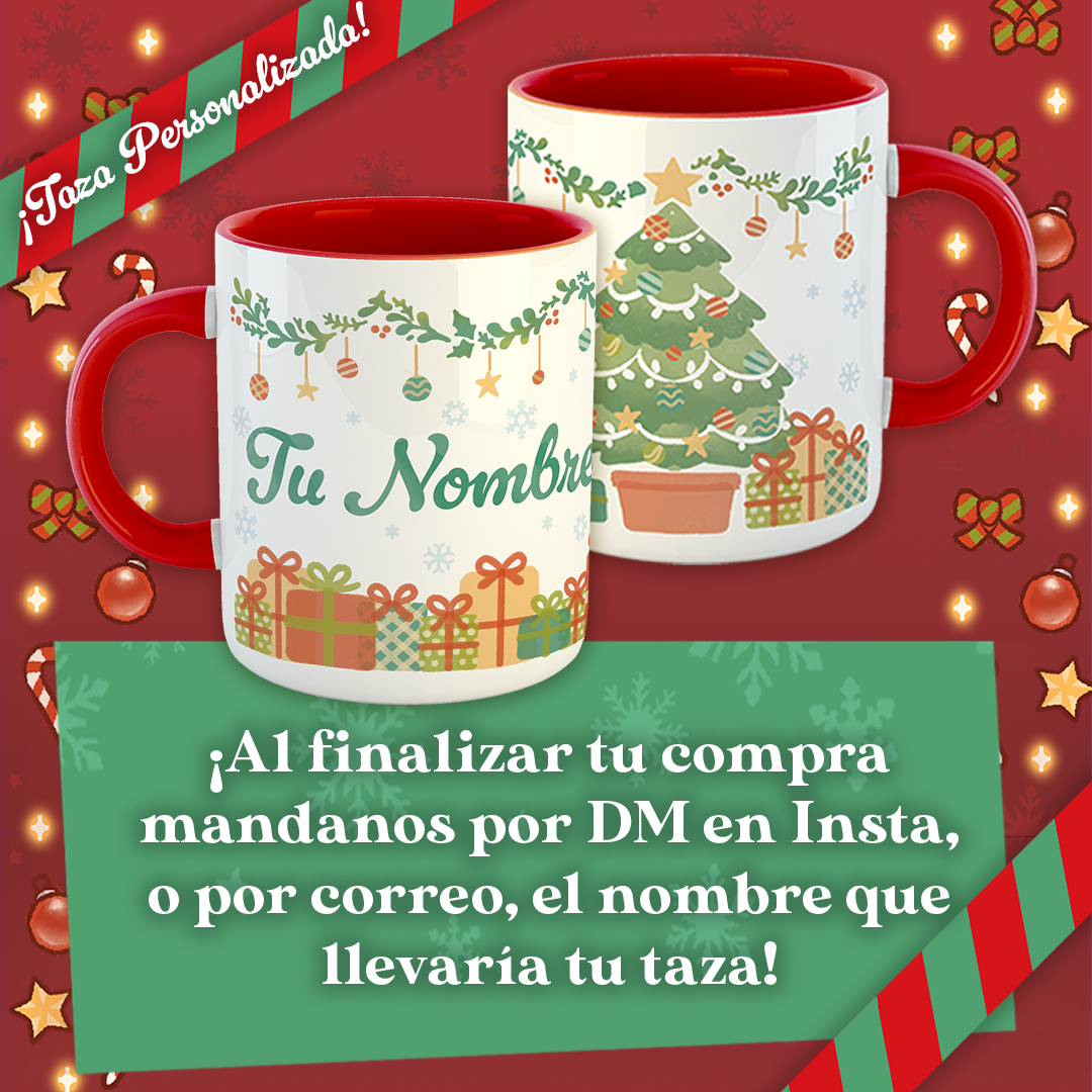 - 1 taza navideña de 11 oz personalizada con tu nombre
