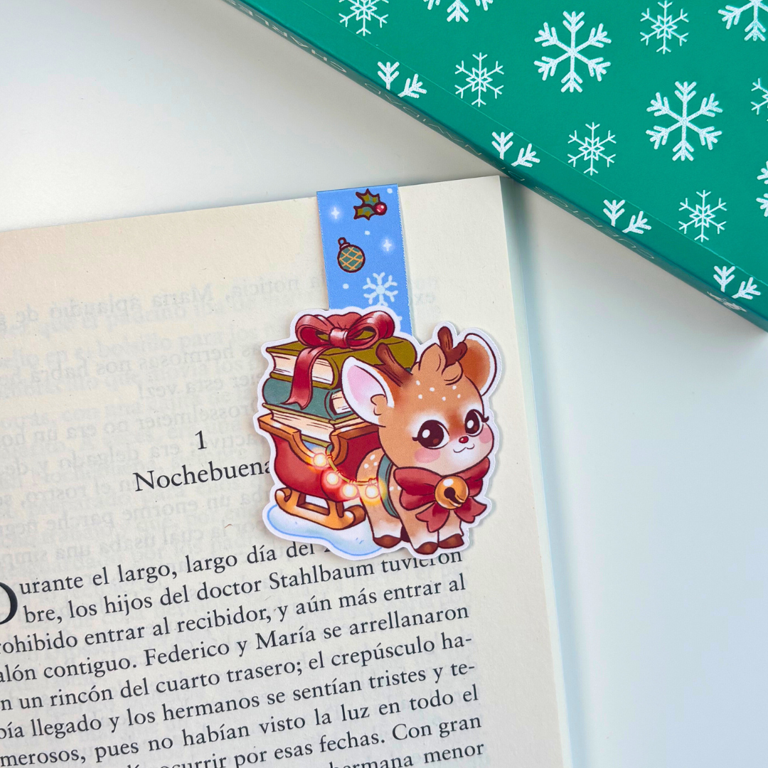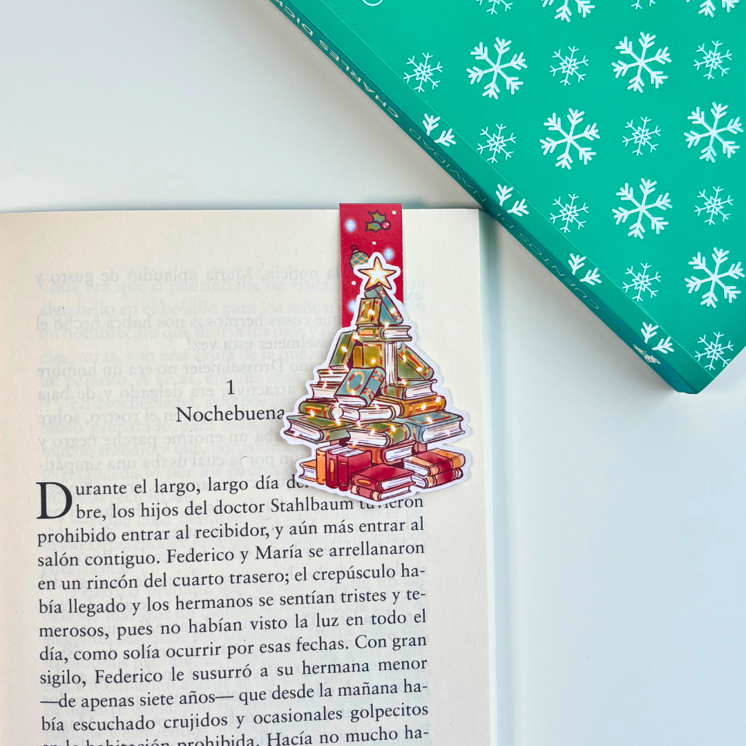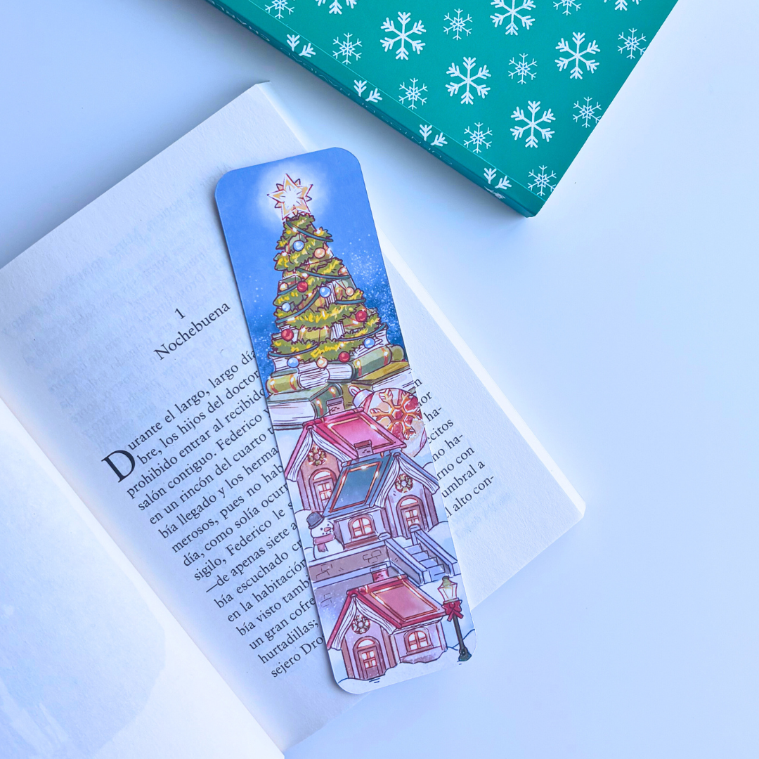 Una mantita, tu separador inspirado en una villa navideña, y un buen libro, harán tu lectura más acogedora.