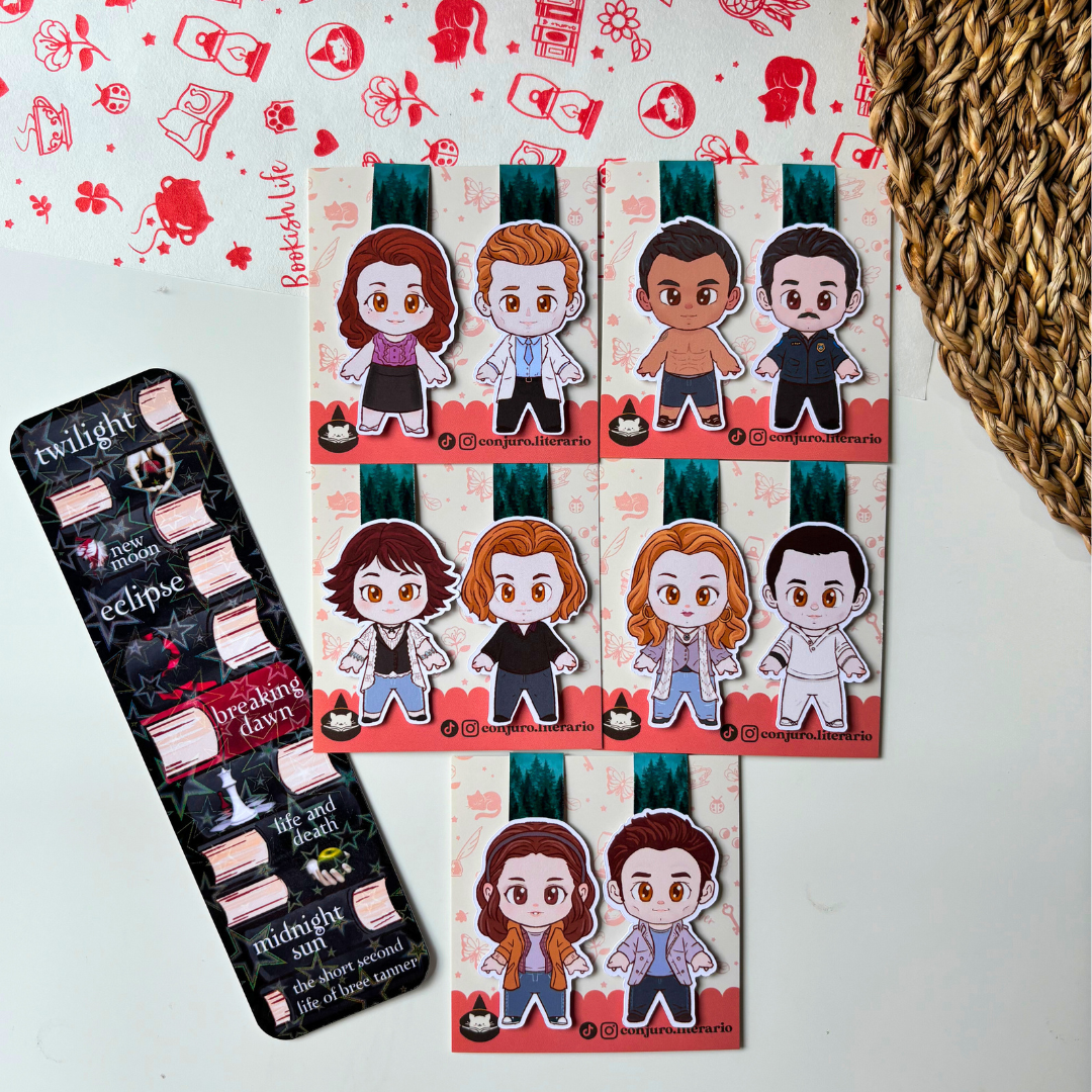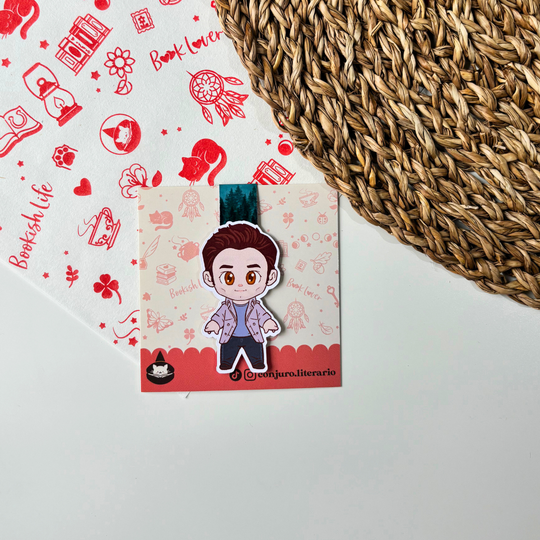Separadores hechos artesanalmente, con materiales de calidad, ilustrados por artistas de Conjuro Literario, cada separador tiene ilustración de doble vista e incluye un imán en su interior.