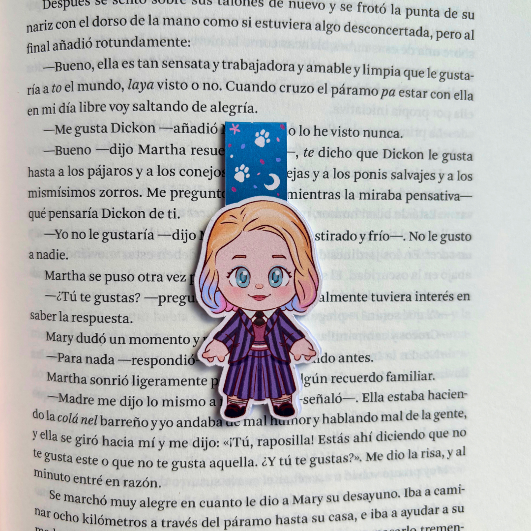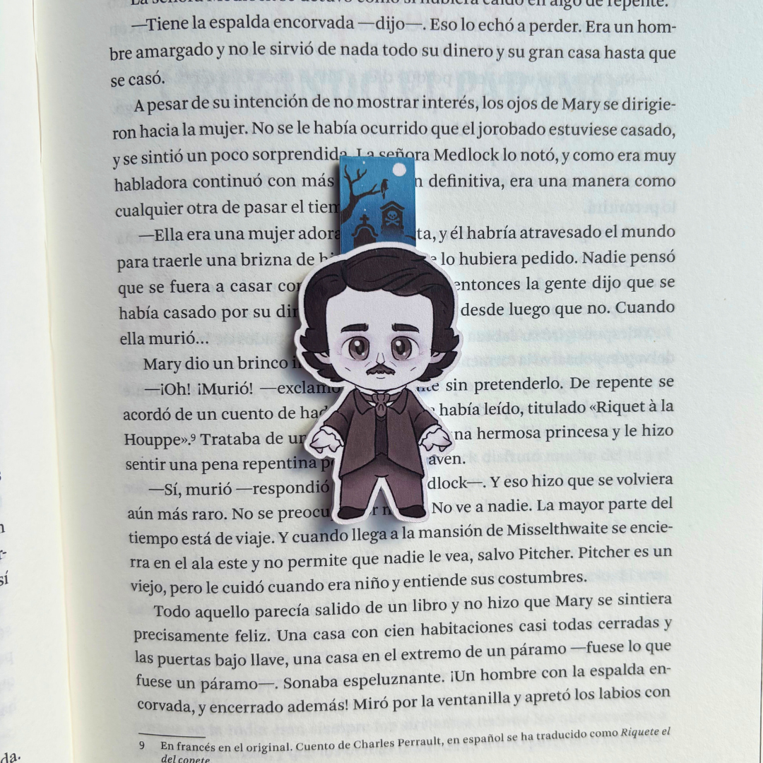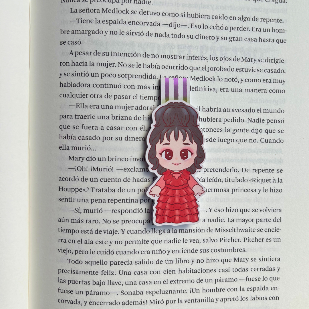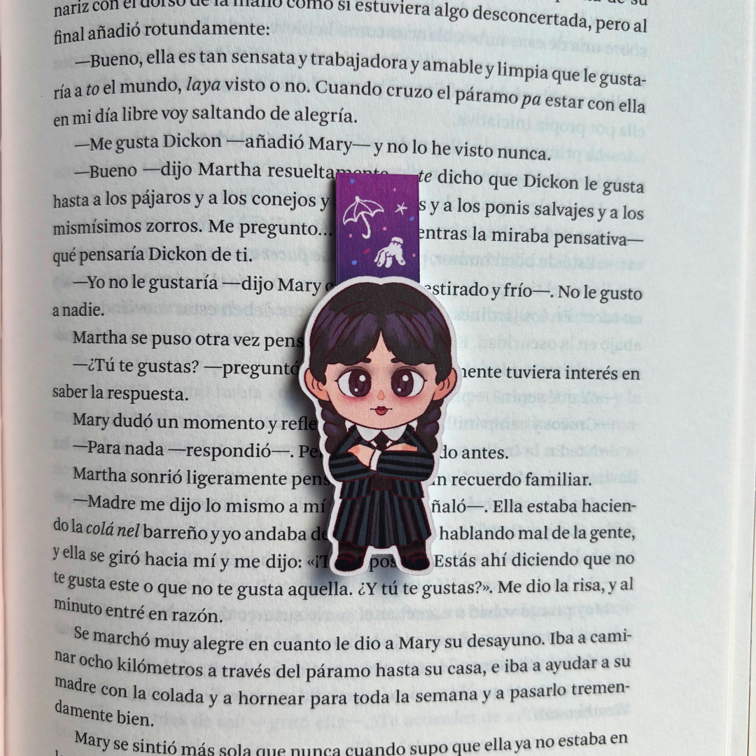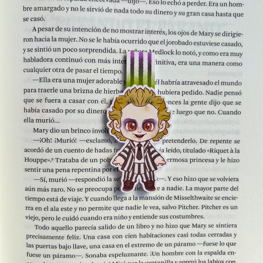 Separadores hechos artesanalmente, con materiales de calidad, ilustrados por artistas de Conjuro Literario, cada separador tiene ilustración de doble vista e incluye un imán en su interior.