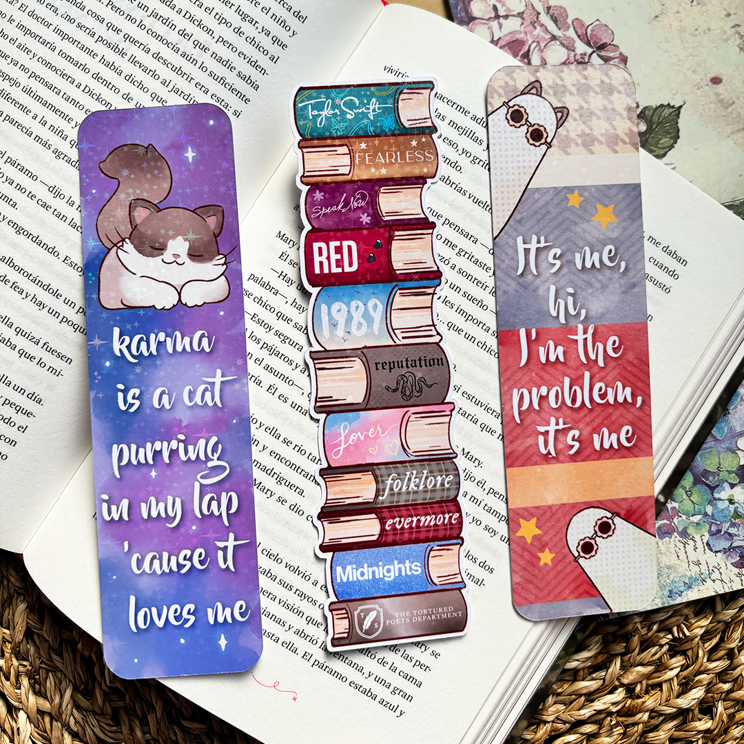 Separadores hechos artesanalmente, con materiales de calidad, ilustrados por artistas de Conjuro Literario, cada separador tiene ilustración de una sola vista y acabado holográfico