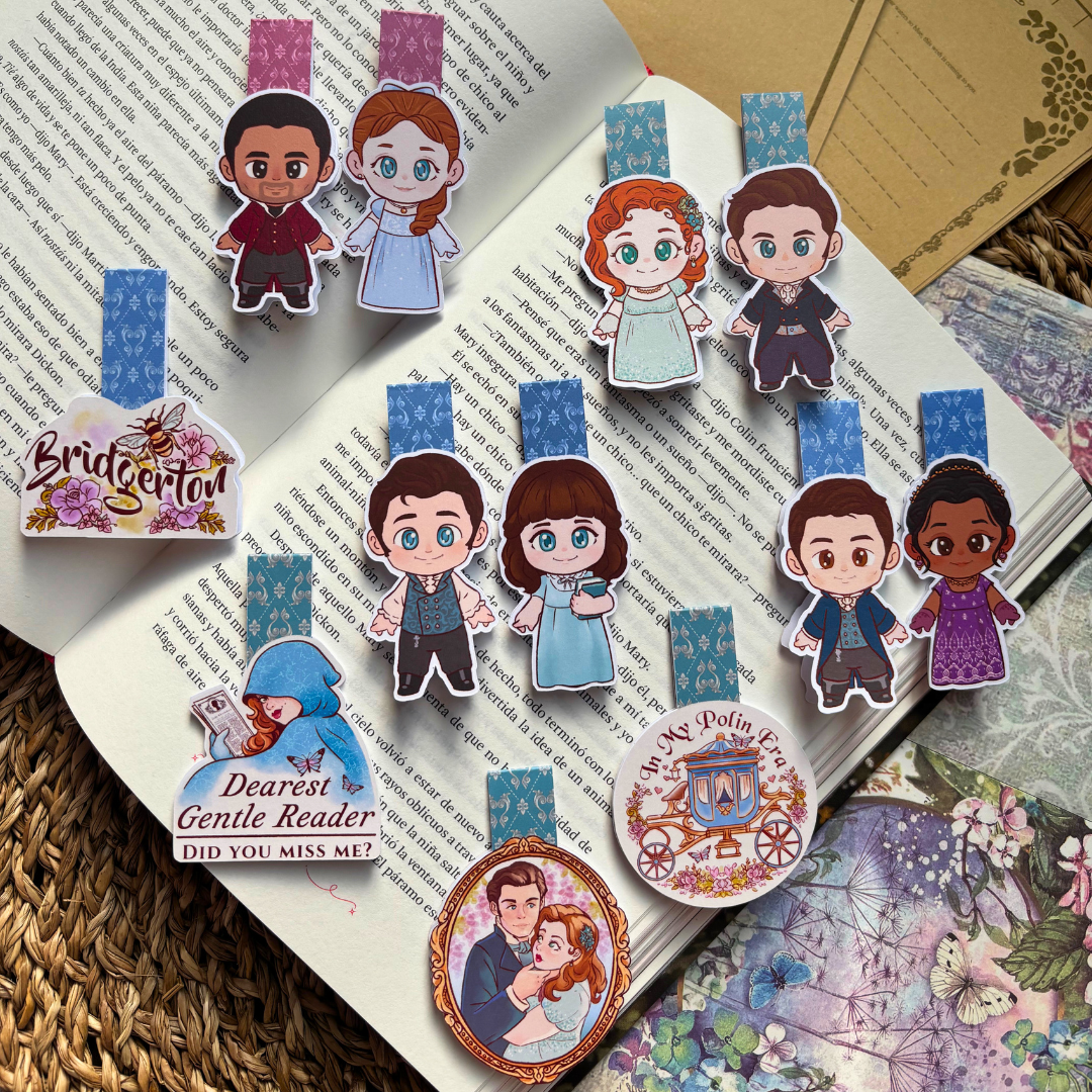 Añade un toque de elegancia y romanticismo a tus lecturas con este set de 12 separadores ,Cada diseño está cuidadosamente elaborado para reflejar la esencia de los personajes, con detalles que evocan los lujosos atuendos de los bailes y el glamour de la saga.